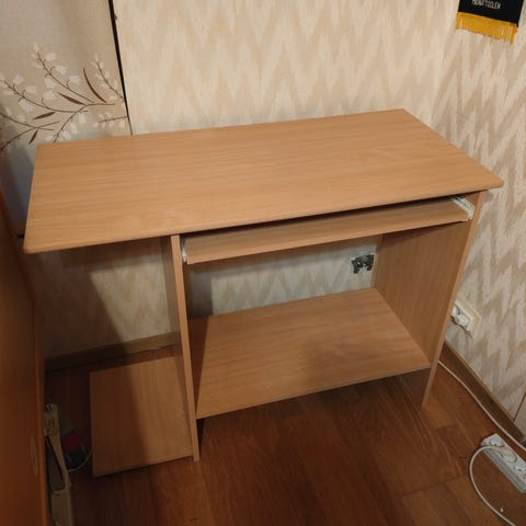 Kohtalaisessa kunnossa oleva työpöytä kulumaa on ja ne näkyy kuvissa korkeus 72cm leveys 110cm syvyys 44cm