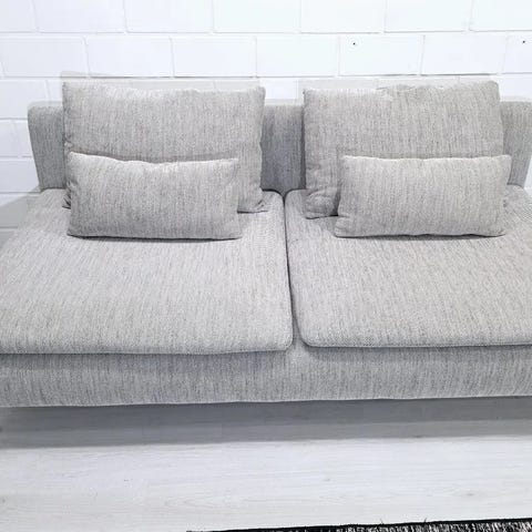 Sohva on hyvässä kunnossa. Päälliset juuri pesty. Päälliset ovat irrotettavat runko myöden. Mitat Leveys 189 cm, syvyys 98 cm. Väri Lejde harmaa