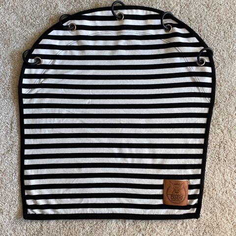 Vähän käytetty Baby Wallaby Musta vaunuverho. Huom yksi rengas puuttuu.