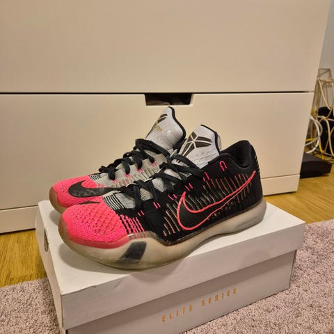 Nike Kobe miesten sisäpelikengät, värit valkoinen ja violetti, Pitokumipohjalla. Pelattu muutaman kerran, mutta ei ollut oikean kokoiset. Koko 44.5