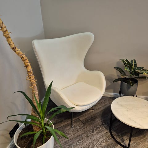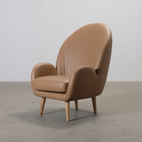 Sofacompanyn Etta on söpö nojatuoli, jonka pyöristetyt muodot ja pehmeä nahkaverhoilu antavat sille kutsuvan ja kotoisan ilmeen. Muoto on saanut inspiraationsa aukeavasta simpukankuoresta, joka näkyy erityisesti sivusta katsottuna. Tammesta valmistetut jalat viimeistelevät nojatuolin elegantin vaikutelman. Verhoilu: Basile Cappuccino.