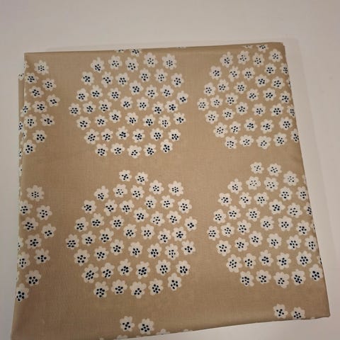 Pöytäliinan halkaisija 135 cm. Pyöreä. Kevyesti toiseltapuolen vahattu kangas. Hinta 20 euroa. Kaupat Tampereen keskusta Metso kirjasto