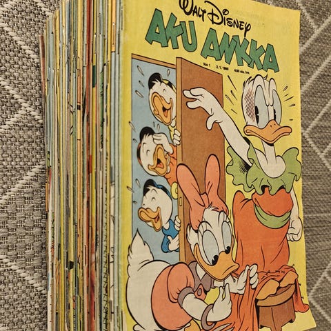 Aku Ankka vuosikerta 1985. Numerot 1-52, mutta puuttuu numerot 27, 42 ja 49.