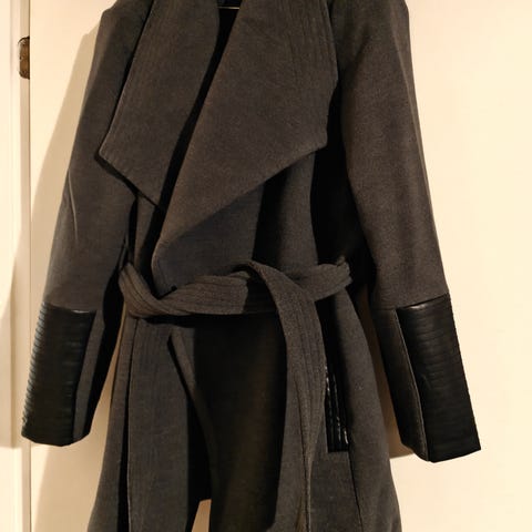 Italiassa valmistettu nahkajäljitelmätakki. Hieman lyhyt kuten hihojen pituudesta huomaa. Kokolappu hämää, tämä on enemmänkin S / M kokoinen takki. Todella näyttävä ja ollut hyvin vähän käytössä. 😸🖤
