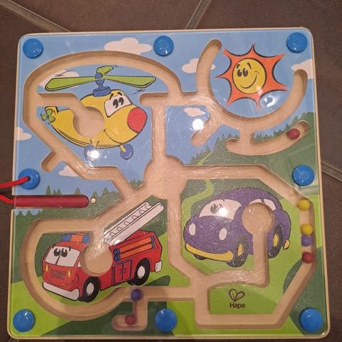 Magneettinen vauvan lelu, jossa palikat tarttuvat toisiinsa. Pallukoissa erilaisia ilmeitä. Pitkuloissa palikoissa pehmeä kuminen pinta. 8 osaa.