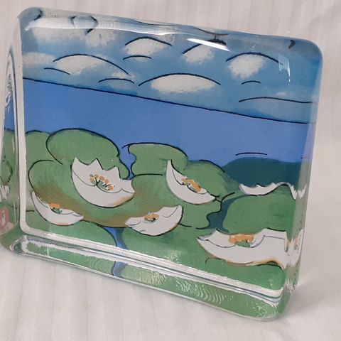 Iittala lasikortti.Kork.8cm.,Lev.9.5cm.Suunittelija Heljä Liukko-Sundström.Singneeraus ja Iittalatarra.
