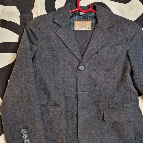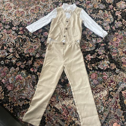 H&M Pojan puku, koko 128. Puvussa on ruskea kangasmateriaali. Sisältää takin, housut ja valkoisen paidan. Huom.! Paidan koko 122!!! Paidan helmassa tahra, joka ei ole lähtenyt pesussa.