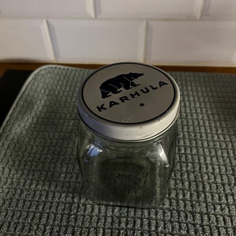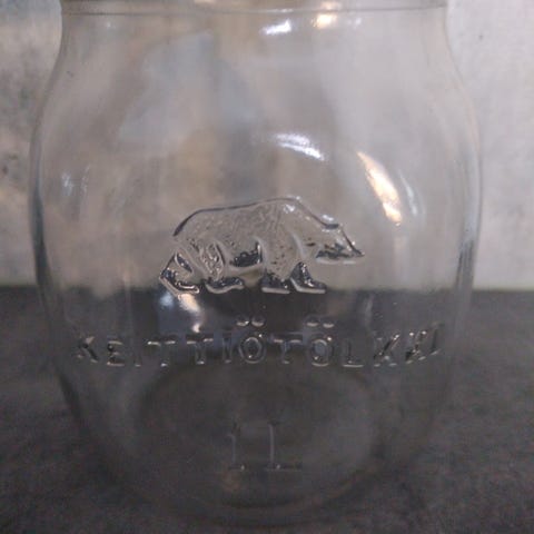 Siistikuntoinen vanha Karhulan lasin lasipurkki. Siisti kansi.