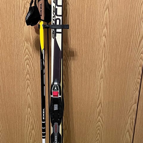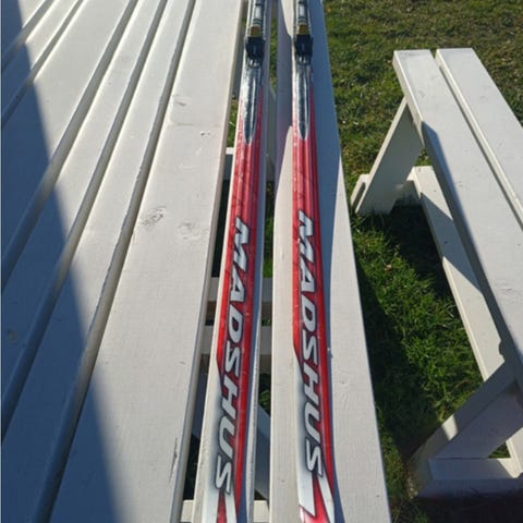 Madshus Skate luistelusukset sinisenä, varustettu sidontajärjestelmällä. Rossignol X6SK monot mustana, sopii Madshus-suksien kanssa. Mukaan One Way sauvat.