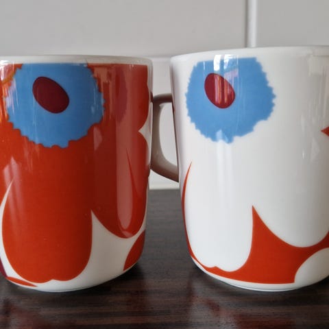 Myydään Marimekon suur unikko mukit yhdessä, kunto hyvä/uudenveroinen. Setissä on kaksi eri väristä Oiva Suur Unikko -mukia, joissa toistuvat värit valkoinen, beige ja aqua. Kupin tilavuus 2,5 dl, korkeus 9.5 cm, halkaisija: 8.0 cm.