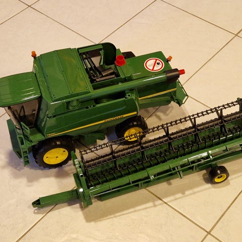 Viljasäiliön pystyy tyhjentämää tyhjennysputkella. Sisältää pieniä muovisia palloja. Lelussa paljon todenmukaisia yksityiskohtia. Avautuvat ovet monia avattavia luukkuja irrotettava niittokone yms.