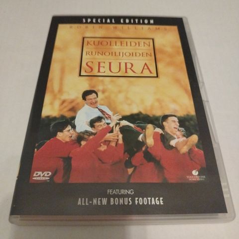 Dead Poets Society - Kuolleiden runoilijoiden seura dvd. Kannet ja levy erinomaisessa kunnossa. Sisältää suomitekstit. Pääosassa Robin Williams.