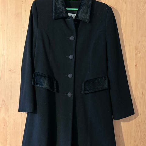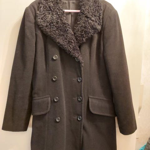 Myydään naisten hyväkuntoinen, laadukas Kestilän villakangastakki, puolipitkä malli, karvakaulus, koko M, Tervetuloa sovittamaan!