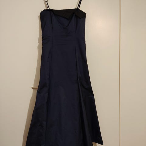 Tumman viininpunainen yksinkertaisen kaunis juhlamekko. Yläosa takaa n.46 cm ja edestä 48 cm. Pituus edestä n. 126 cm ja takaa 139cm. Mekko kapeimmalta kohdalta 96 cm. Mekon koko M-L. Kuvassa S- kokoisen henkilön yllä. Tuotemerkki Ångel Bridesmaids.