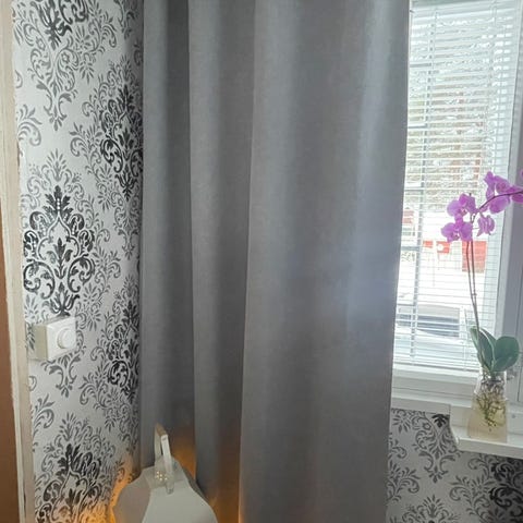 Ihanan hempeät rengasverhot. Leveys 145 cm x pituus 214 cm.