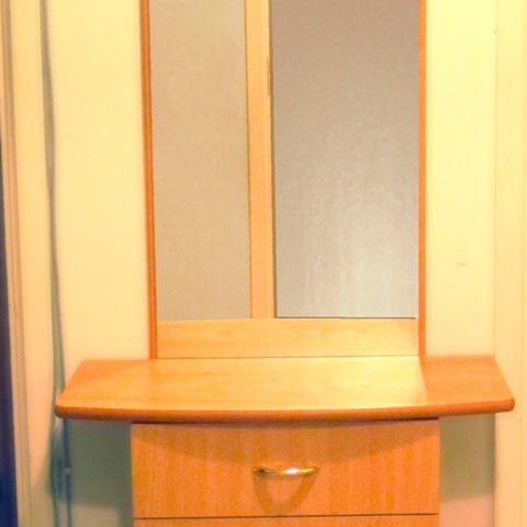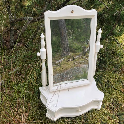 Päällimmäinen pinta kulunut, sisäpinta hyvä ja kulumaton. Kasvipöytä tai meikkipöytä. Avain on tallessa ja toimii hyvin. Nouto Laajasalosta. Ei postitusta. Tarkista myös muut ilmoitukset!