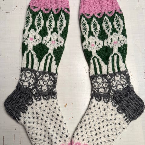 Nalle langasta neulotut villasukat. Koko 38-39. Varsi 38cm kantapään alle.