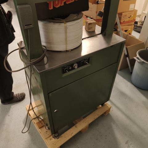 Koneella on pakattu mm. kiinankaalia ja salaattia. Hihna syöttää kaalin ja muovikääreen automaattisesti, hitsaa ja katkaisee saumat.