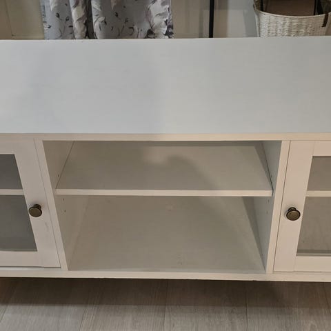 Annetaan Ikean puinen tv-taso, väri valkoinen.