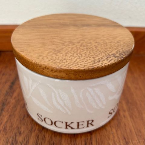Pentik voirasia puukannella, 2x pieni kulhoa, 2x maustepurkki, 1x keksipurkki korkkikannella. Valmistettu pilkkusavesta. Astiat soveltuvat erilaiseen ruoan säilytykseen ja tarjoiluun keittiössä.