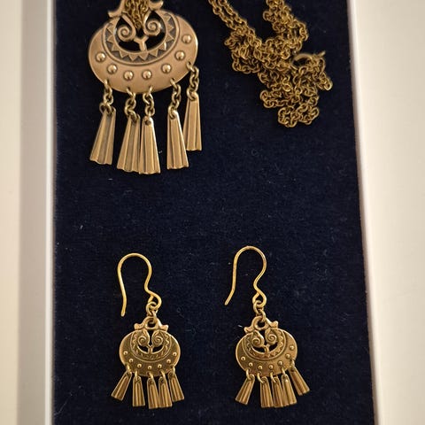 Kalevala Kuutar hopea korusetti, joka sisältää kaulakorun korkeus 4,8 cm+hopeaketjun ja pienet korvakorut. Muutaman kerran käytetty, eli uuden veroiset. Ovh tällä hetkellä uutena 300 euroa.
