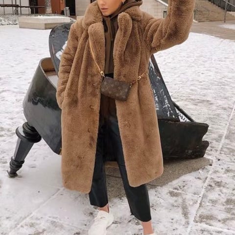 Mango pitkä takki naisille, koko M. Takki on valmistettu valkoisesta tekoturkismateriaalista. Malli on pitkä ja siinä on kaksirivinen napitus sekä taskut. Sopii viileämpiin sääolosuhteisiin.