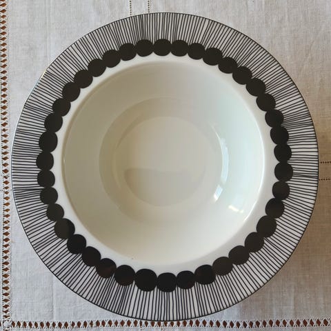 Marimekon Siirtolapuutarha syvät lautaset, halkaisija 20cm ja tilavuus 2.5 dl.