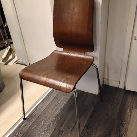 -IKEA tuoli, jossa harmaa kangaspäällyste ja kromatut jalat. Vanhempaa ikean mallia, jossa päällinen ei ole irrotettavissa. Yleisilmeeltään siisti. Kromijalkojen pinnassa kosmeettisia virheitä/likaa