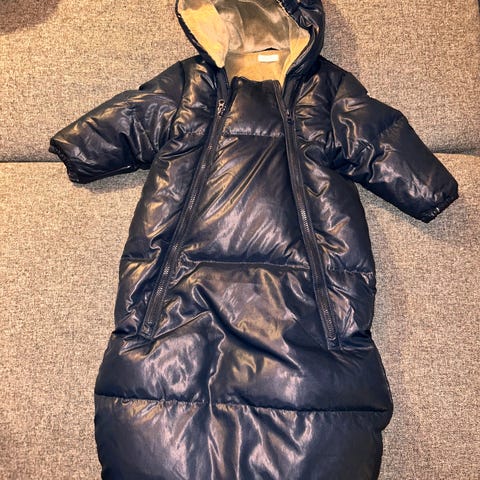 Sisällä pehmeä fleece vuori. Vetoketjun avulla saa helposti haalarista unipussin. Tupla vetoketjun ansiosta helppo pukea. Kiiltävän ulkopinnan ansiosta helppo pyyhkiä puhtaaksi, ei tarvitse heti laittaa pesukoneeseen.