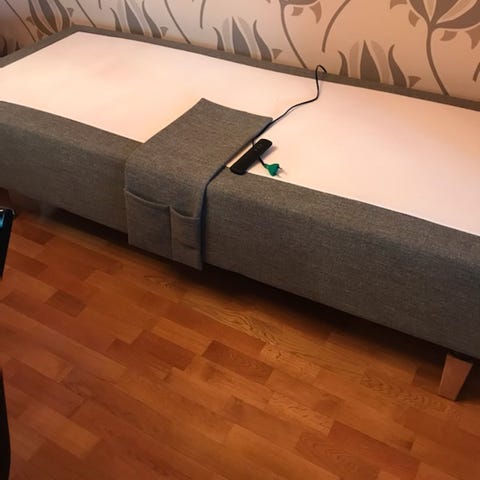 Myydään 90x 200 TEMPUR North Adjustable -moottorisänky 10 cm SmartCool sijauspatjalla. Uudenveroinen, ollut vierashuoneen sänkynä ja vain vähän nukuttu. Pää- ja jalkapääty nousevat, säätimessä valmiina myös ns. "zero gravity" -asetus. Mukaan Tempurin oma suojalakana ja toiset, matalammat mustat jalat. Ovh 4988€. Koiratalous.