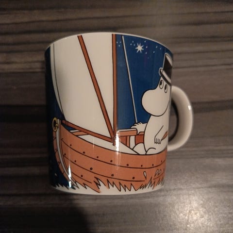 Muumipappa tuumiskelee lautanen
