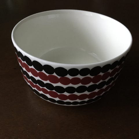 marimekko iso kulho 3L, räsymatto musta kuvio, käyttämätön, tarra pohjassa.