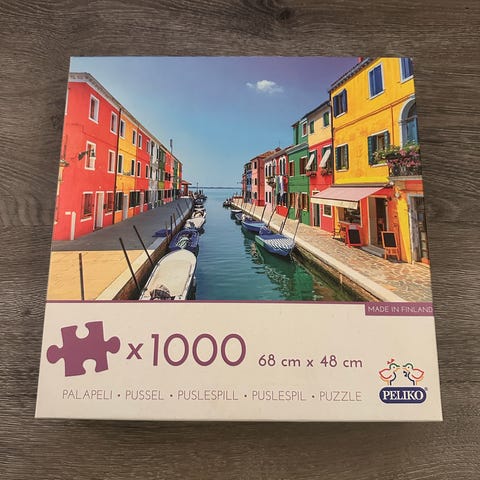 Puzzel 750 palaa palapeli, koko 55 cm x 43 cm. Sisältää värikkään kuvan, jossa maaseutumaisema, taloja, eläimiä ja ihmishahmoja. Myynnissä myös muita palapelejä. Kysy mahdollisuudesta yhdistää pelejä samaan pakettiin.