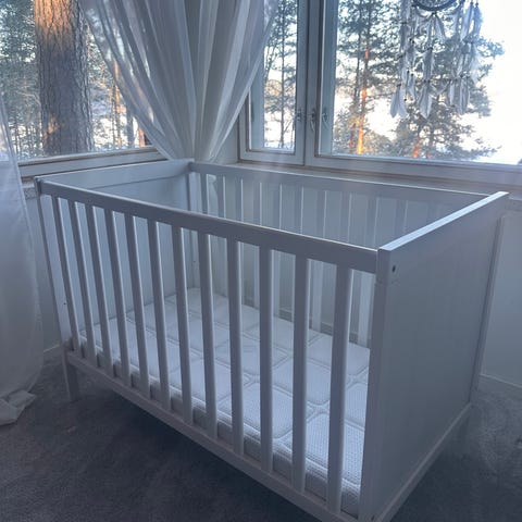 Nopea myynti! Harmaa Ikea Sundvik -pinnasänky. Todella siistissä kunnossa, ei ole puremajälkiä tms. Normaalia käyttökulumaa, eli pari pientä naarmua, jotka näkyy jos oikein läheltä katsoo (kuva). Mukaan patja (ei vahinkoja, kuin uusi), kosteussuoja ja reunapehmuste.