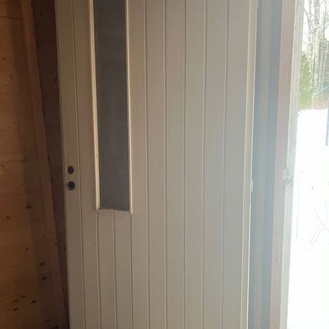 Uusi saunan ovi leppäkarmilla harmaa lasi pieni jälki kahvan kohdalla lasissa