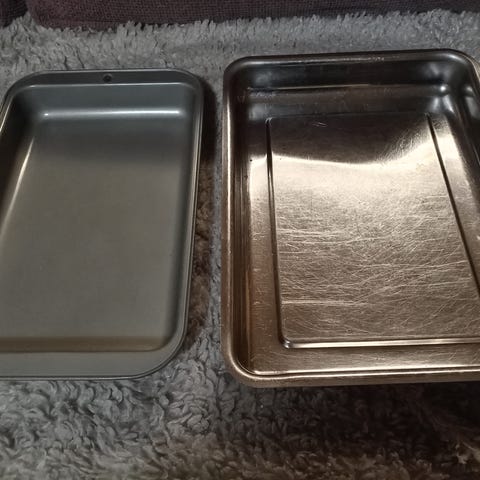 Kaksi muovista GN vuokaa kansineen. Koko 1/6. Toinen syvempi, toinen matalampi. Käytönjälkiä. Ehjät.