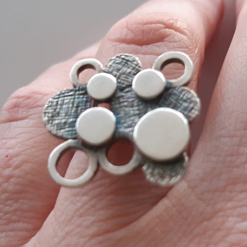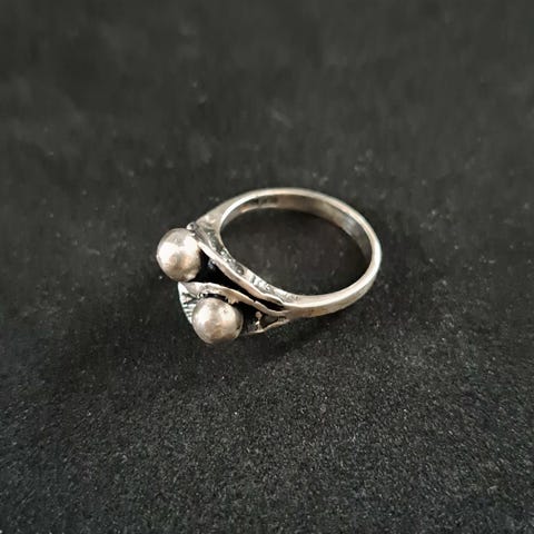 Vintage Hopea sormus leimoilla