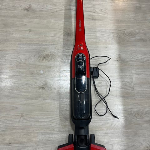 Myydään toimiva varsi-imuri pois tarpeettomana. Pieniä käytön jälkiä on, ja harjaosuus hieman pölyinen, mutta toimii moitteetta. Laturi mukana.