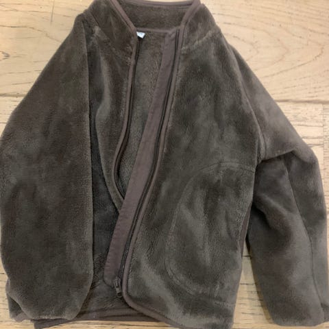 Vuorellinen keinonahkatakki pehmeää materiaalia. Teddykarvasomisteet. Hupun reunassa nyörikiristys. Hyväkuntoinen.
