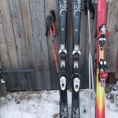 Suksissa on hieman käytön jälkiä. Kantit hyväkuntoiset. Siteet ovat ehjät, mutta niissä on hieman kulumaa.