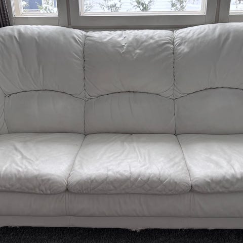 Annetaan nahkainen jakkara. Pinta on kohtalainen kunto, mutta rakenne on hyvässä kunnossa.