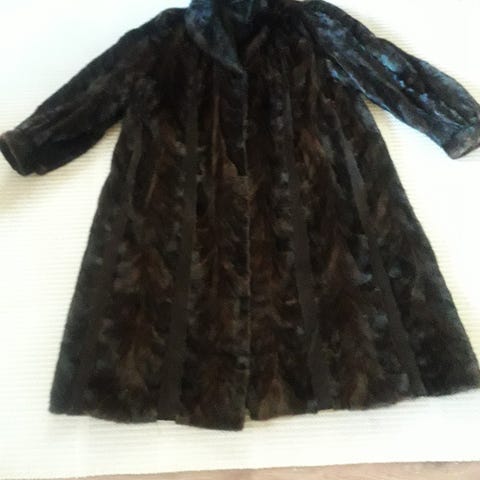 Aito minkkiturkki. Hiha n. 60 cm ja itse turkki n.98 cm niskasta mitattuna. Turkissa on sisätasku. Mukaan tulee ”kaulahuivi”, joka on myös valkoista minkkiä.