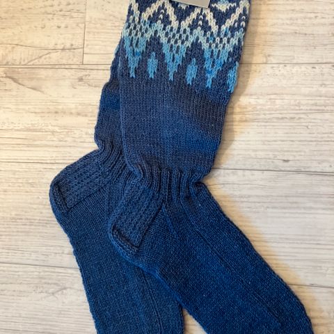 Myydään kuvan Nalle -langasta käsin neulotut villasukat. Koko 38-39. Konepestävät.