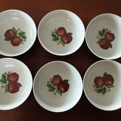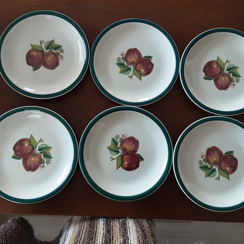 Myydään kuvan mukaiset matalat ruokalautaset, 6kpl. Käytettyjä, mutta mielestäni hyväkuntoisia ja kaikki ehjiä. Halkaisija 26 cm. Yhteishinta 18 euroa. Nouto tai postitus, postikulut lisätään hintaan. Katso myös muut ilmoitukseni, niissä saman sarjan astioita lisää.