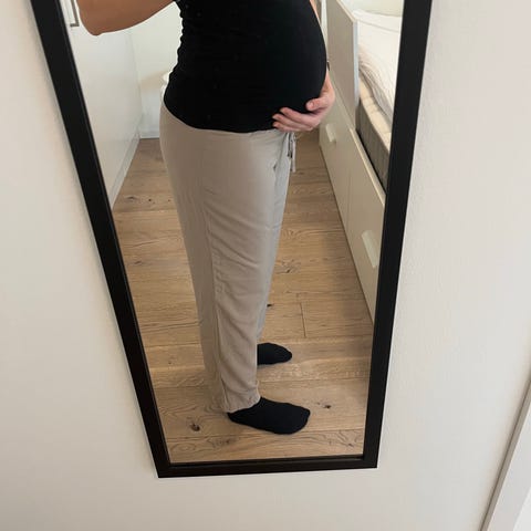 H&M mama hieman vajaamittaiset pellavahousut, koko L. Vähän ryppyiset säilytyksestä, mutta oikein hyväkuntoiset ja ihanat päällä jopa ihan loppuraskaudessa. Naruja saa kiristettyä.