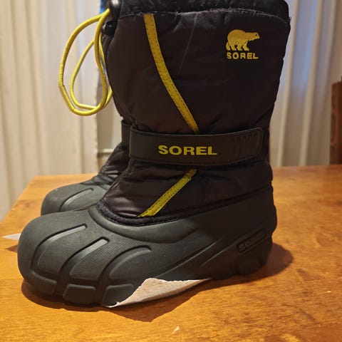 Sorel pakkassappaat, koko 33, unisex. Kengät ovat mustan sävyiset. Kengissä on tukeva kumipohja.