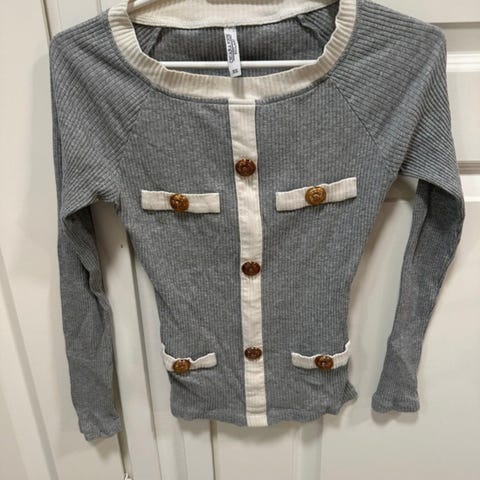 Next neulepusero ruusun värinen. Pikeekaulus ja koristekivi napit.