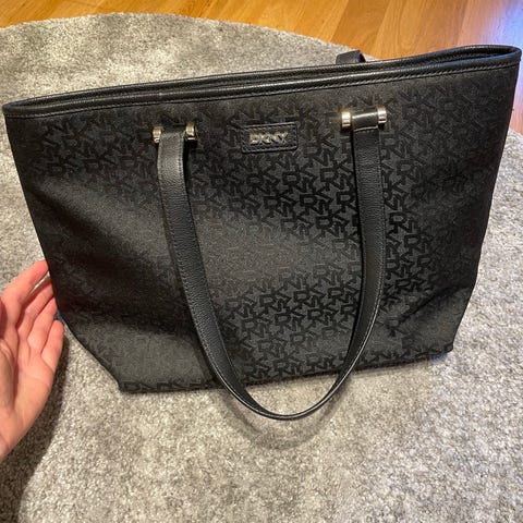 DKNY naisten laukku, joka pääosin siistissä kunnossa. Kantokahvoisssa langat repsottaa, mutta ei vaadi suurta kunnostusta. monikäyttöinen laukku, paljon taskuja ja säilytystilaa. Nouto Söderkullasta tai toimitus Porvooseen