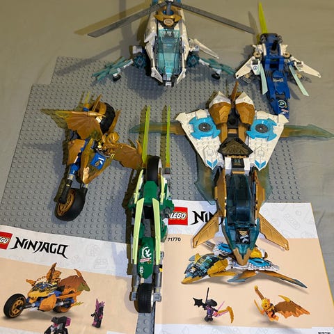 Legoja ninjagojo osia ja paljon auto osia yms.