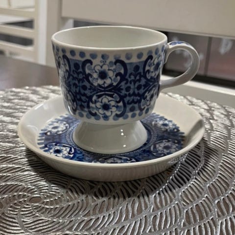 Kupin korkeus 4,5 cm ja lautasen halkaisija 11 cm. Todellakin harvinaisen loistokunnossa ikään nähden, upeat on.